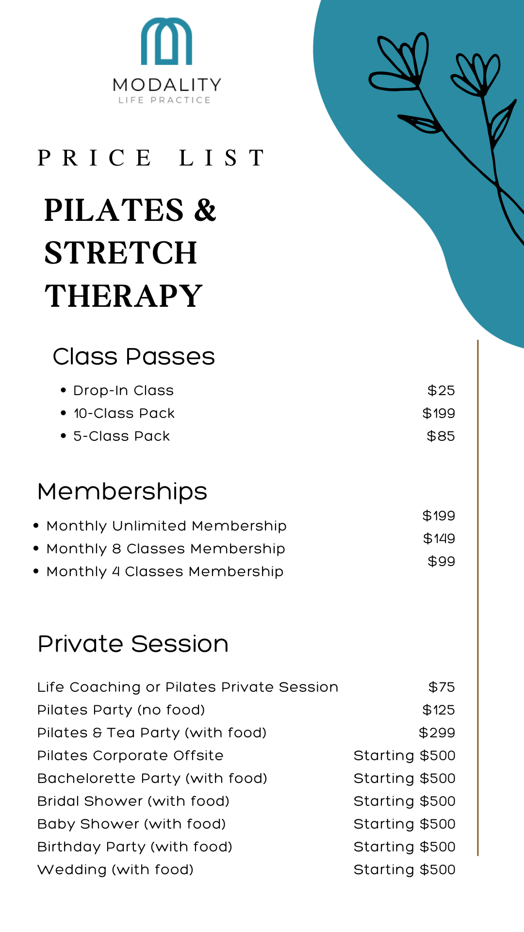 “More than a studio—Modality offers Pilates for transformation, life coaching for support, and unforgettable parties for corporate teams, bachelorettes, and life’s biggest moments.”